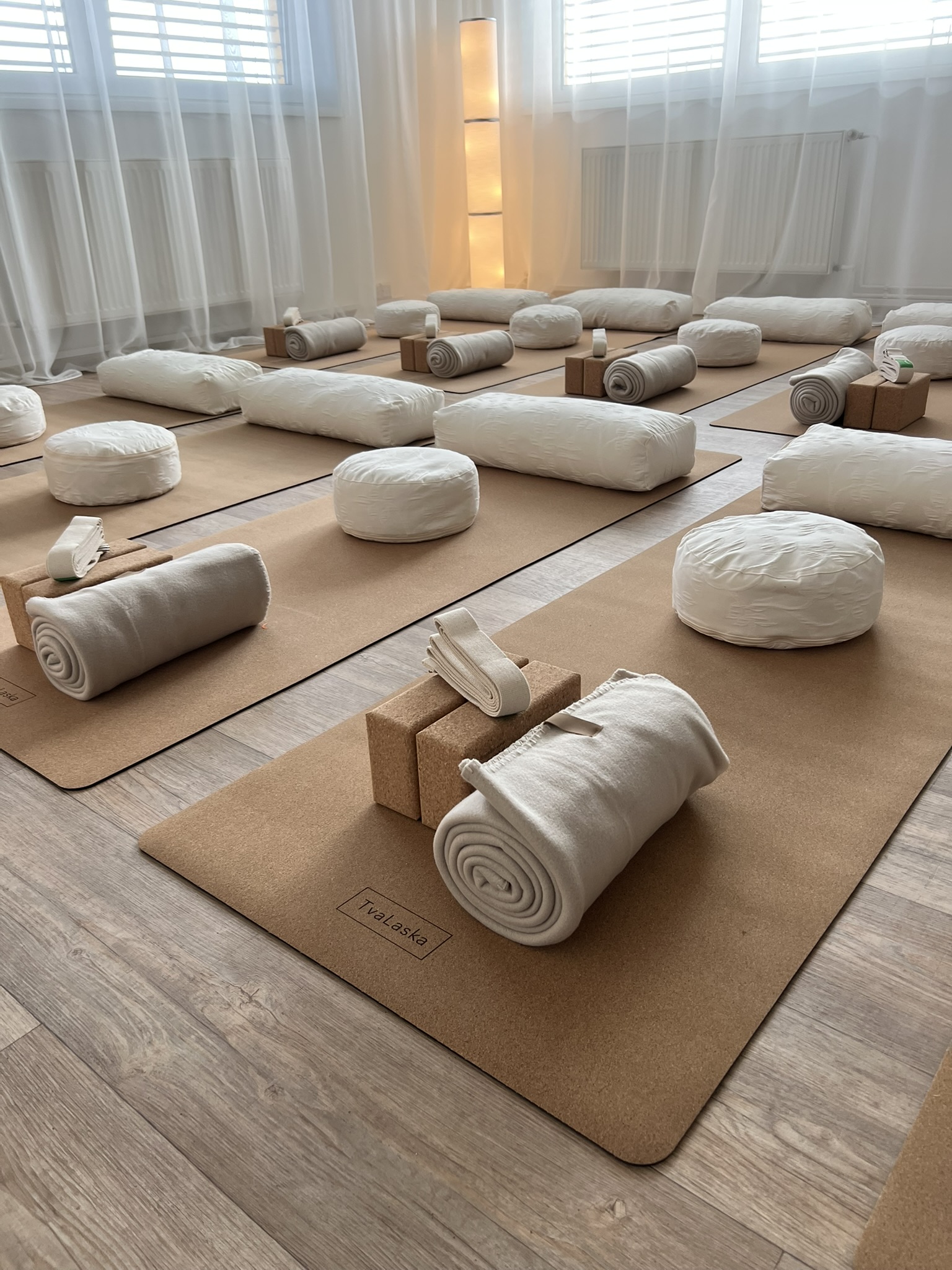- Jógové bločky a bolstery – z udržitelných materiálů šetrných k přírodě